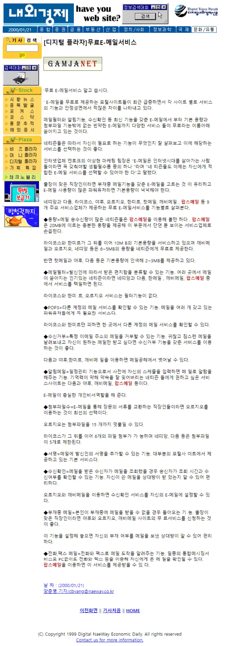 | 한메일 | 10MB | 다양한 부가 기능 |