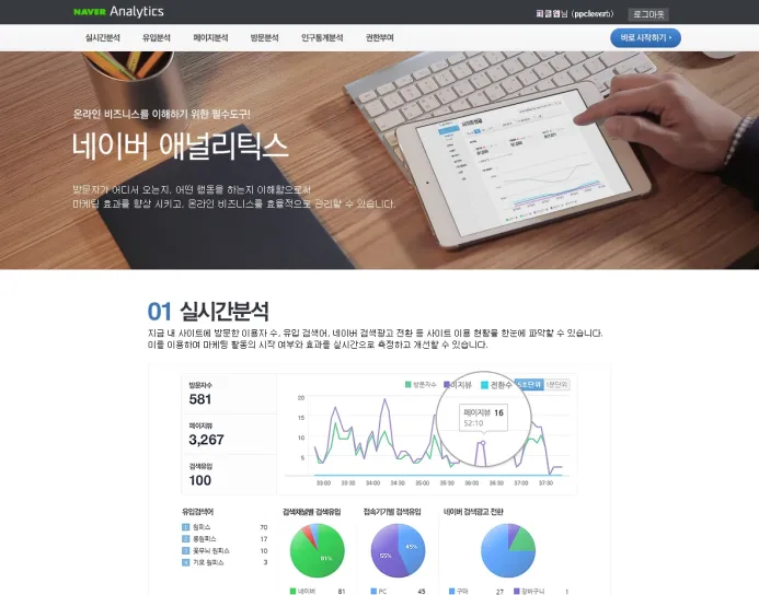 네이버 애널리틱스는 네이버에서 제공하는 무료 웹로그 분석 서비스로, 방문자의 사이트 이용 행태와 유입정보 등 온라인 비즈니스를 운영하는데 도움이 되는 분석자료를 제공합니다. 다양한 보고서를 통해 사이트를 방문하는 고객을 보다 잘 이해하고, 사이트 운영 및 마케팅 활동을 개선하는데 도움을 얻을 수 있습니다.